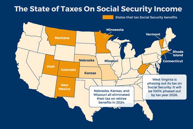 While most states do not impose income taxes on Social Security, several still do. Some of these states may allow you to exclude federally taxable Social Security benefits for state income tax purposes based on your adjusted gross income. Review the graph to see where your state falls.6